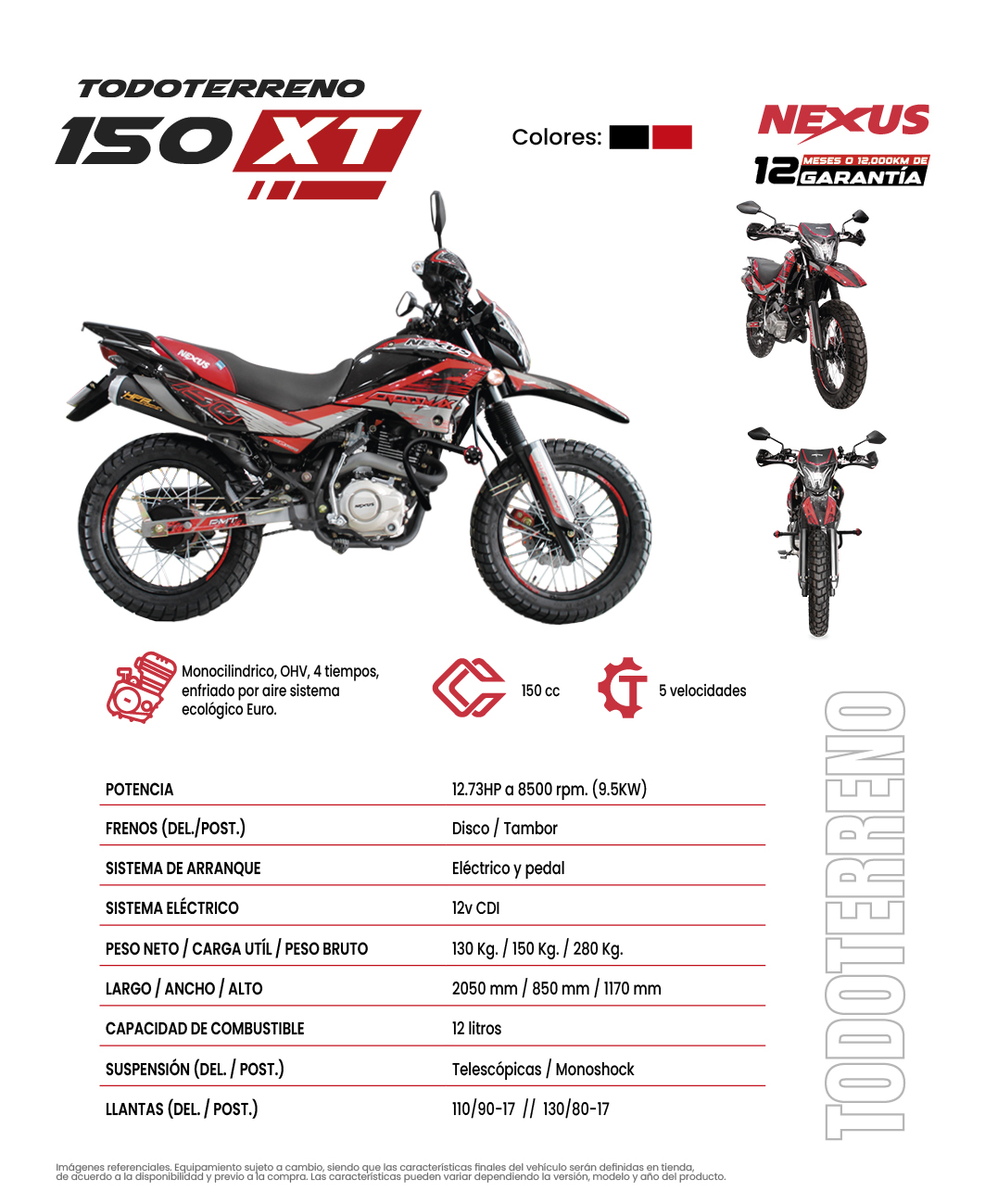 12 meses garantía o 12,000 km lo primero que ocurra (Motos NEXUS).